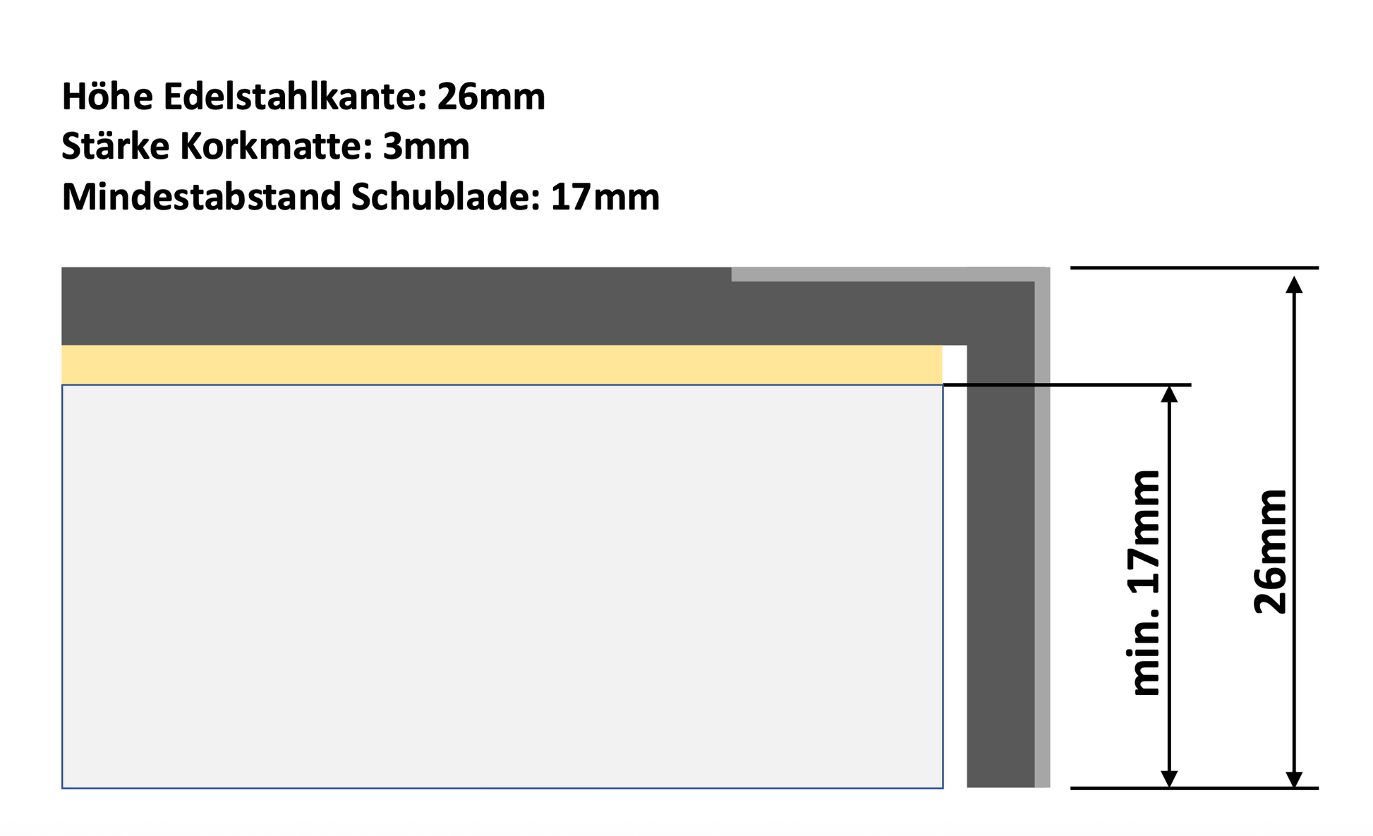 Höhe Edelstahlkante: 26mm