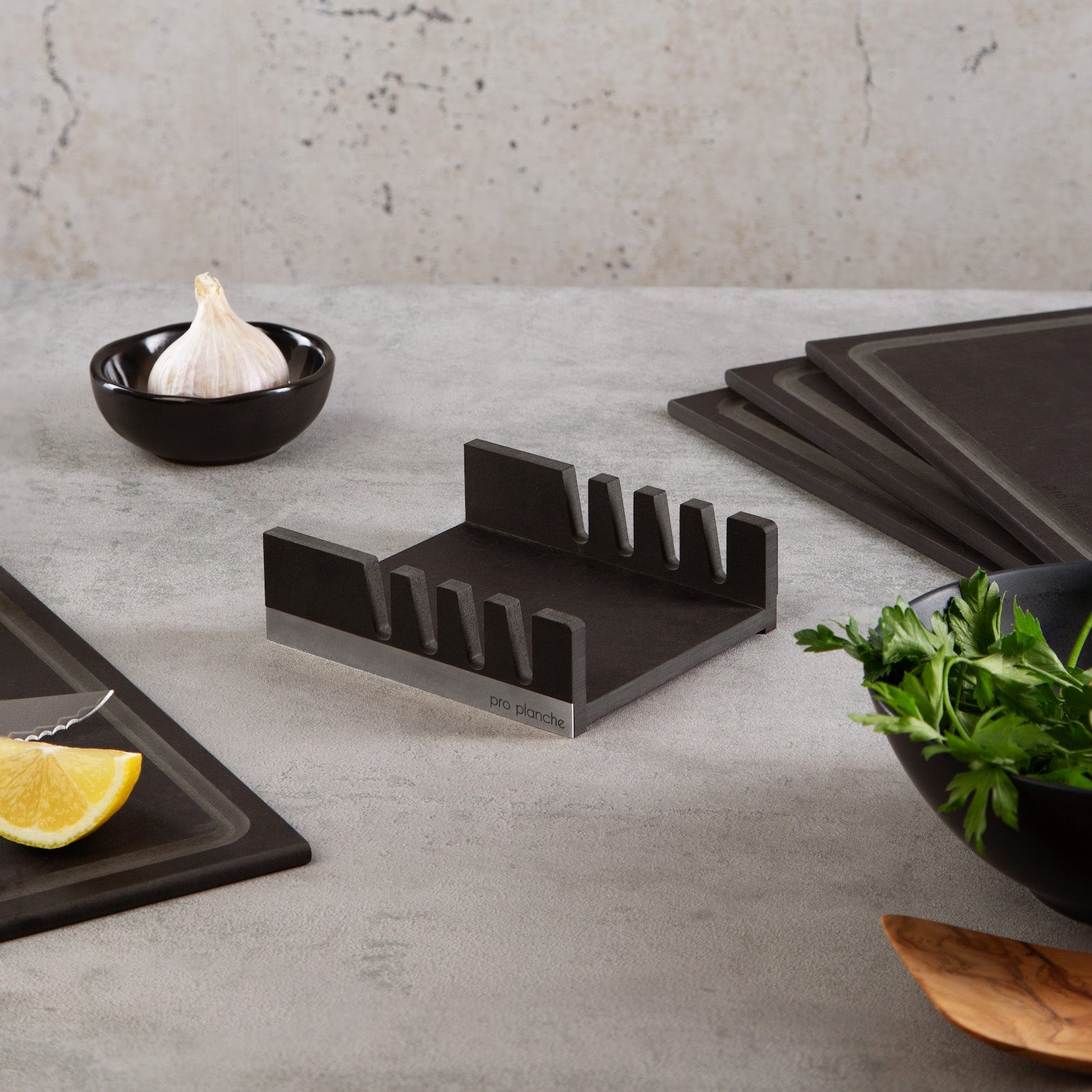 Der Schneidbretthalter von pro planche darf in keiner Küche fehlen.