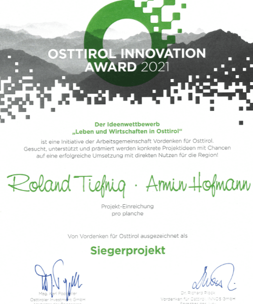 "pro planche" begeistert nicht nur Publikum beim Innovation Award 2021, sondern auch Fachjury sind überzeugt. Das Schneidbrett aus recyceltem Papier ist nachhaltig und widerstandsfähig zugleich. Geeignet für schwierige Lebensmittel, temperaturbeständig bis zu 170°C und geschirrspülerfest. Außerdem werden die Schneidbretter von einem regionalem sozialökonomischen Betrieb hergestellt.