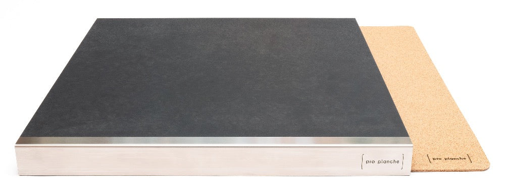 Durch die stabile Anschlagleiste aus Edelstahl und den perfekten Halt durch die mitgelieferte Korkmatte eignen sich die Mehrzweckbretter der pro planche 4 Series ideal zum Kneten und Backen.